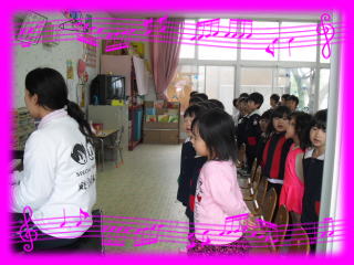 年中少さんは 修了式に向けて 歌やお話を聞く練習をしています。
