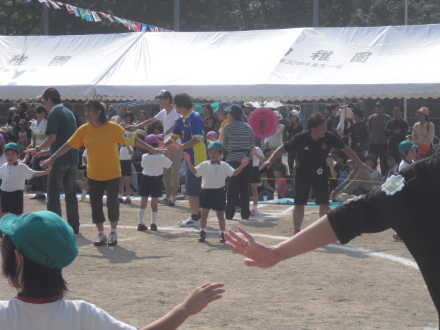 卒園児&祖父母「力を合わせて投げてキャッチ」