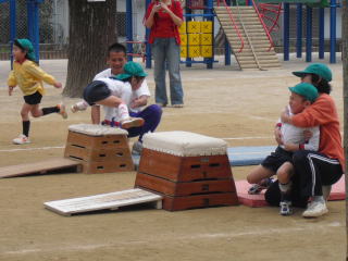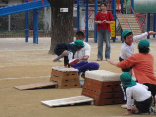 跳び箱の上で バランスを崩し、落ちてしまいました