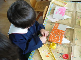 いつもの折り紙のように 簡単の折れない画用紙を しっかり折って