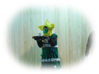 まずは ・・・・お盆とコップをツリーさんに持たせて・・・