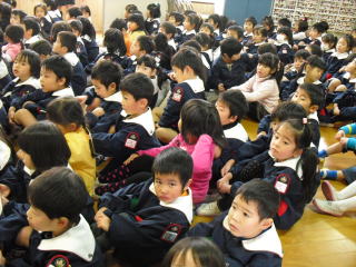 「おりこうさんにしてると サンタさんが幼稚園に来てくれるよ!」