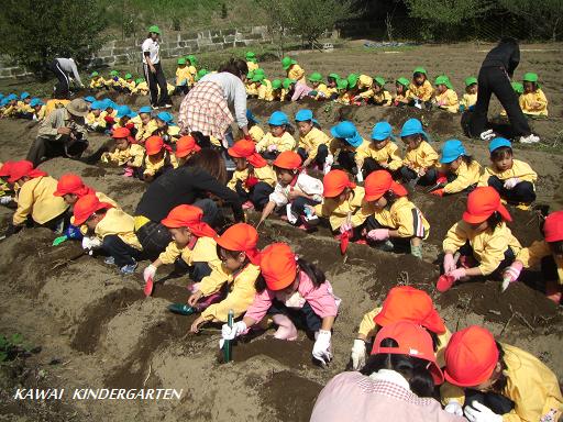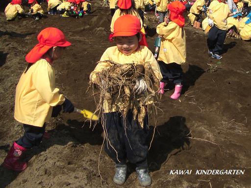 ものすごい勢いで掘り始めた園児たち。